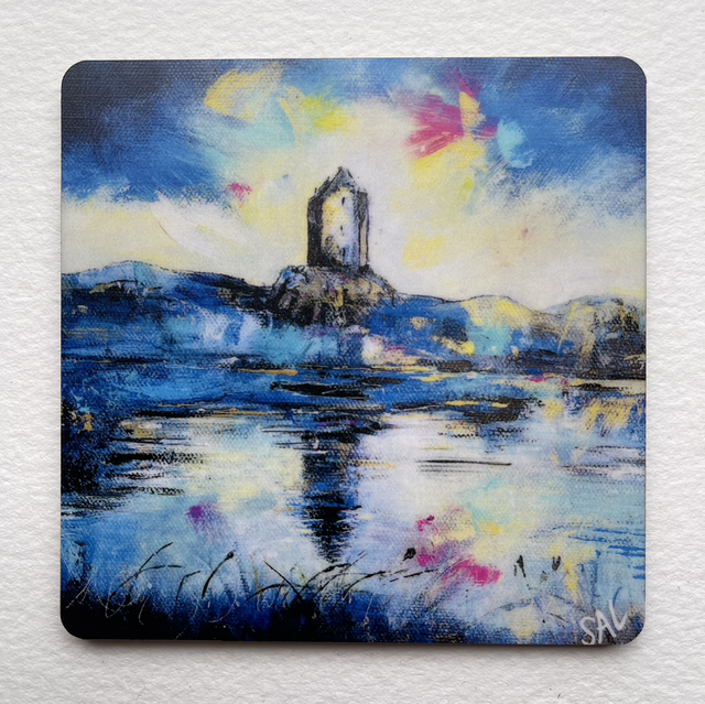 This is one of Shona Lenaghan’s Scottish landscape images. The coaster is made from melamine. It is 9x9cm square with a black edging and a recycled backing.