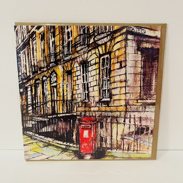 This is one of Shona Lenaghan’s range of Scottish landscape 15x15cm greetings cards. It is blank inside, is accompanied with a matching envelope and is individually wrapped in a cellophane sleeve. The artist’s details & card title appear on the back.