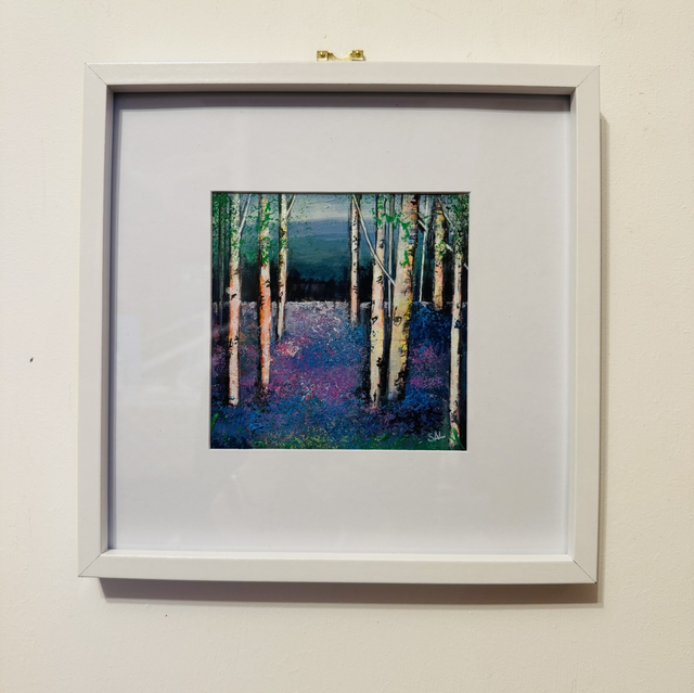 This piece is called Walk With Me Through the Borders Bluebells. It’s inspired by the magic of a peaceful woodland walk among blooming bluebells—light, colour, and stillness all at once.