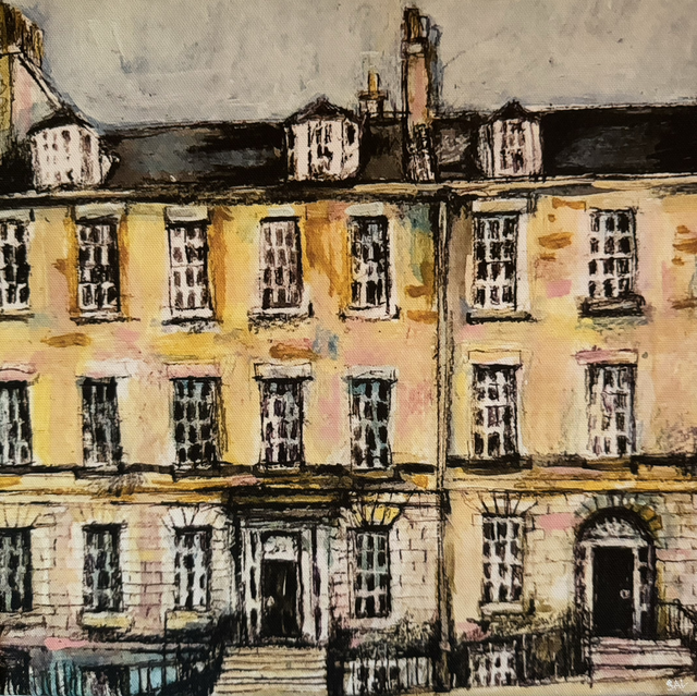 This is one of Shona Lenaghan’s range of Scottish landscape 30x30cm unframed canvas prints. It depicts some of Edinburgh’s fantastic architecture.