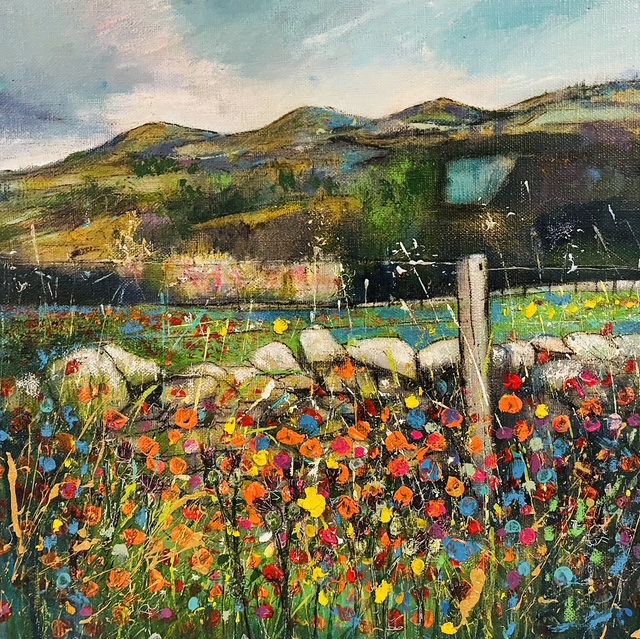 This is one of Shona Lenaghan’s range of Scottish landscape 30x30cm unframed scroll paper signed prints depicting the Eildons. It has a gloss image surface. It arrives in a cardboard tube and is easy to frame up. It is lightweight and perfect to post out as a gift.