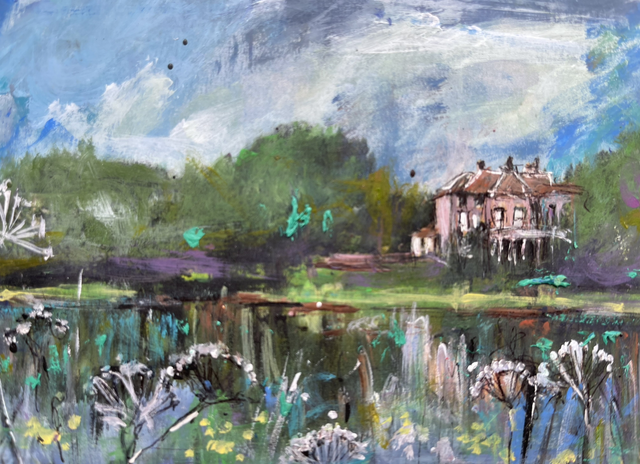 One of Shona Lenaghan’s Scottish Scottish Borders scenes which are inspired by her sketch trips to the Haining in Selkirk.