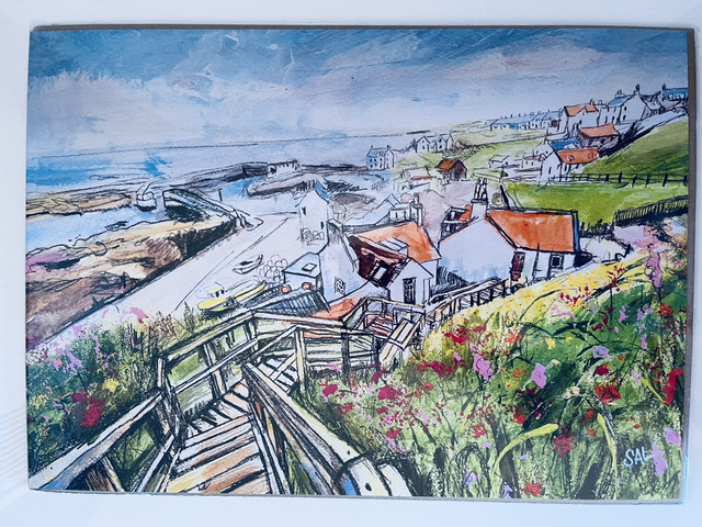 One of Shona Lenaghan’s St Abbs scenes depicting the harbour. Signed by artist and her art bio information accompanies it. Size A3. If posted arrives rolled in a cardboard tube.